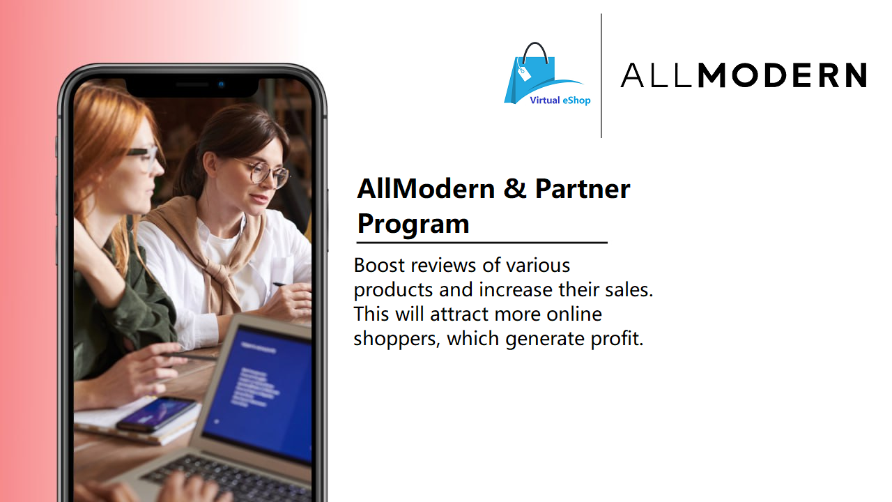 Our job is to boost reviews of various products to help other AllModern&Partner merchants find the best products and increase their sales. This will attract more online shoppers, which will generate profits and we will get paid.
