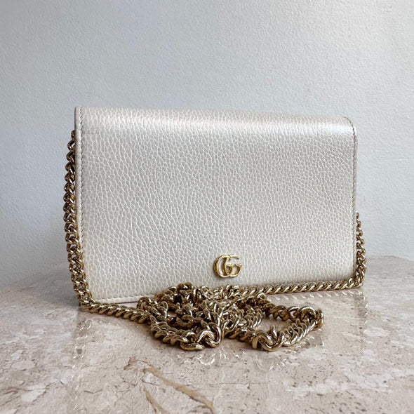 Pre-Owned GUCCI Off White GG Marmont Chain Wallet