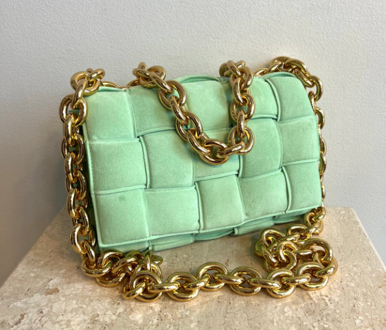 Pre-Owned BOTTEGA VENETA Green Suede Chain Cassette Bag